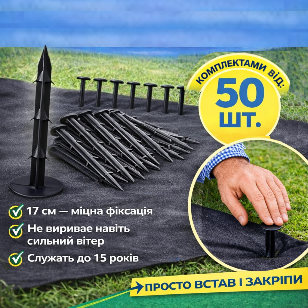 Дуже зручні кілочки — агроволокно тримається навіть при сильному вітрі.